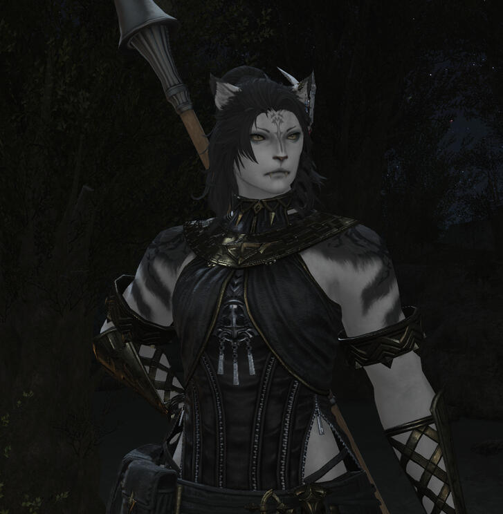 Eraya was born and raised in Northern Ilsabard. As a female Hrothgar she was given the teachings necessary to fulfill the role of queen. She made sure to maintain her studies while also learning how to fight and help supply others of the queendom with any armor or weapons they might have needed. She served Queen Wira faithfully, even as they were forced to ally with the Garleans who had taken over their home.Queen Wira knew better than to submit blindly to the Garleans and for a decade she was able to successfully excuse her queendom's lack of efforts towards the Garlean war front. Until one day when Queen Wira was assassinated. No one knew how they got in, how they got past her guards, all they knew was that the assassins were hired by the Garleans to kill their queen. The proof was evident in the types of weapons used.Vlatka, another female Hrothgar, was in line for the throne, but Eraya felt she was weak and not a good fit to be the next Queen. She was not shy in saying as much and challenged Vlatka for the throne. The challenge was simple; they would duel and whichever won would be queen. While Eraya fought hard and true, Vlatka fought dirty. Vlatka used a tool invented by the Garleans to stun Eraya and used the opportunity to knock her out, winning the duel.As Eraya awoke, she realized Vlatka had betrayed Wira in order to sit on the throne as their inside woman. Being a woman of loyalty and justice, Eraya left her kin behind, becoming one of the Lost. She aims to strengthen herself so she might one day return to her clan and challenge Vlatka for the throne once more.For now, she searches for a Gunbreaker who had modified the Gunblade design farther than even the Garleans could. Her hope is to learn what the Gunbreaker achieved to bring it back to her people and help free them from beneath Garlean rule.